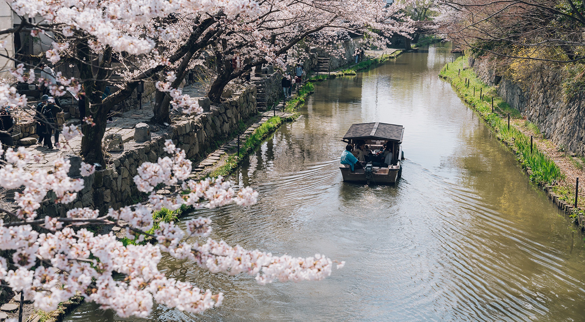 Hachiman-bori has a long history and has been used as a filming location for movies and television dramas. Long ago, this canal was built by Toyotomi Hidetsugu (nephew of Toyotomi Hideyoshi) and connected to Lake Biwa, with boats carrying commercial goods traveling back and forth. It is a great place to enjoy the changing seasonal scenery: cherry blossoms in spring, willows in summer, autumn foliage in fall, and snowy landscapes in winter. Please leisurely enjoy the peaceful and atmospheric scenery of Hachiman-bori, lined with white-walled storehouses, from aboard a traditional Japanese boat.
