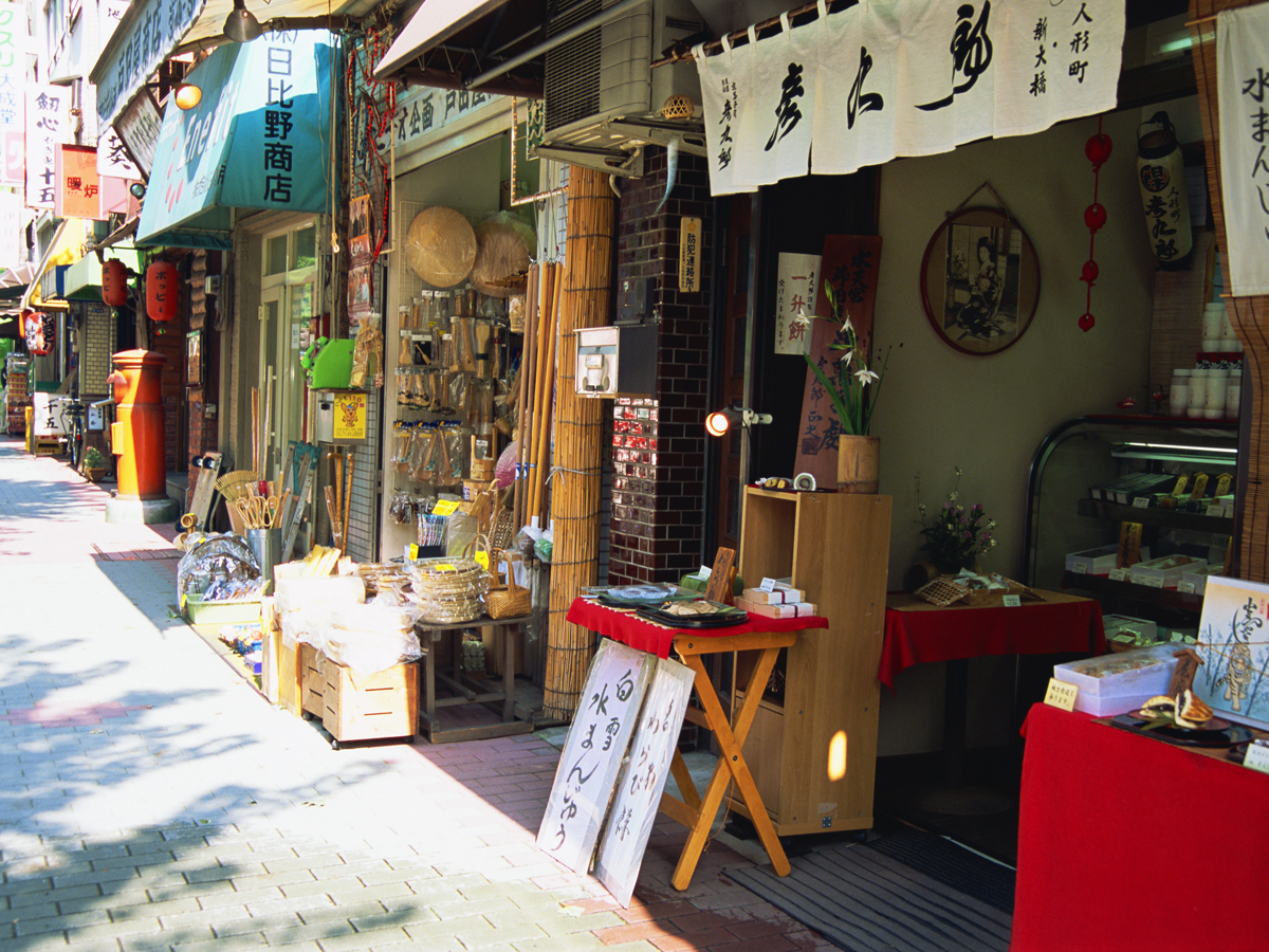 Amazake Alley is the small approximately 400-meter long street extending from the Amazake Yokocho Intersection just outside Ningyocho Station to Meijiza. It was given the name "Amazake Alley" because there used to be a shop selling amazake (sweet sake) at the entrance to the alley during the early Meiji Period. Even now amazake is sold at the many sake, Japanese-style confectionary, and other shops, and many people love walking down this alley to experience the Shitamachi (old Tokyo downtown) atmosphere.
