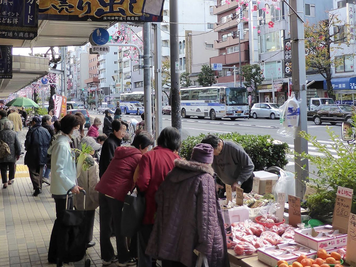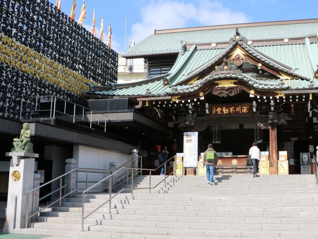 Tomioka Hachiman Shrine, famous for the Fukagawa Hachiman Festival, one of the three great festivals of Edo, and Fukagawa Fudo Hall, with its impressive main hall whose exterior walls are inscribed with mantras of Fudo Myoo (Acala), attract many worshippers each day. The shopping streets are lined with long-established shops and restaurants, and renowned stores, allowing visitors to take a stroll while enjoying food. The area's proximity to Tokyo Bay and the Sumida River is also appealing, as the waterfront scenery displays different atmospheres throughout the four seasons.